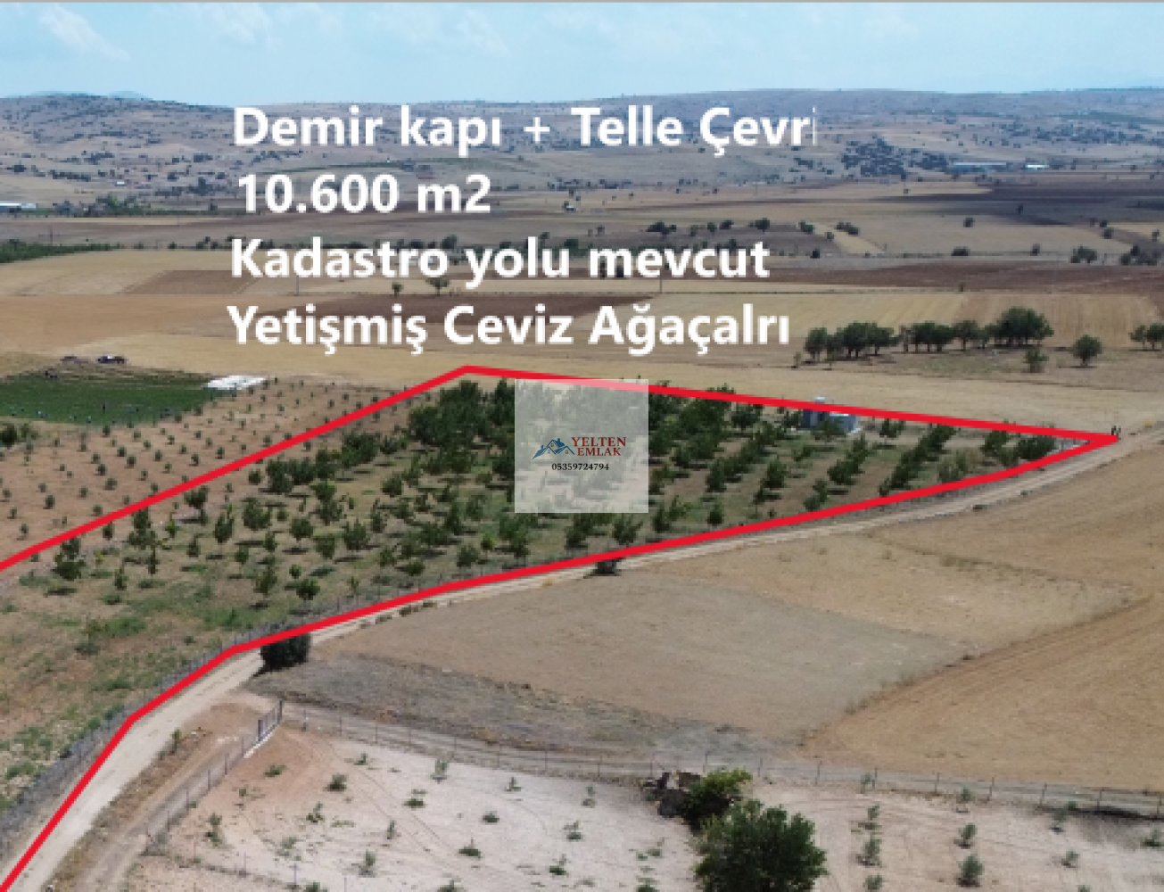 ** 10.600 m2 ** Yetişmiş Ceviz Ağaçları ** Demir Kapı + Telle Çevrili ** 200 Civarında Ceviz Ağacı ** Çift Girişli ** Kadastro Yolu Mevcut
