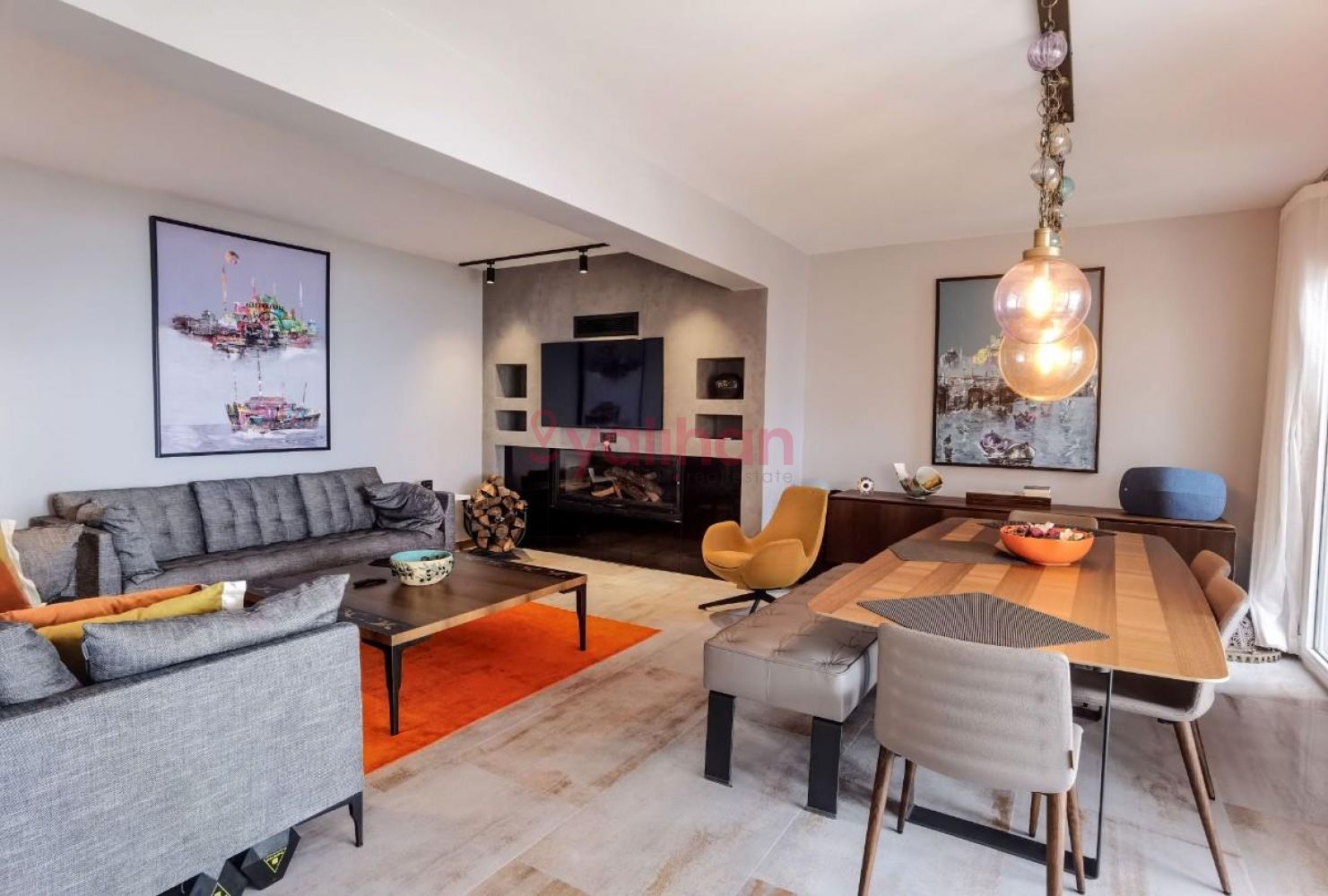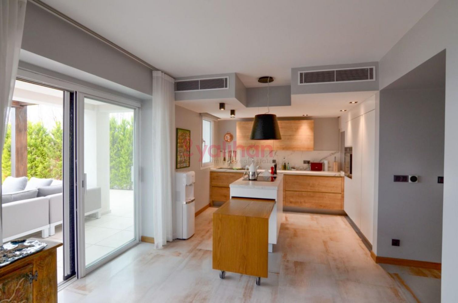 • Bahçe katında şömineli salon, açık mutfak ve WC vardır