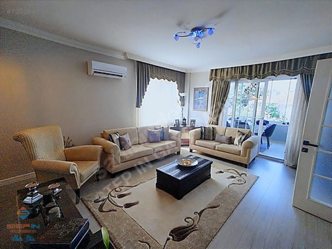 salon, mutfak ve yatak odaları balkonlu