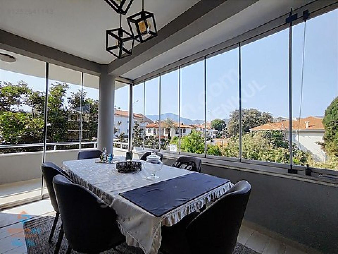 Salon bağlantılı Giyotin cam ile kapatılmış geniş balkon